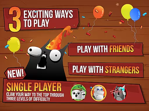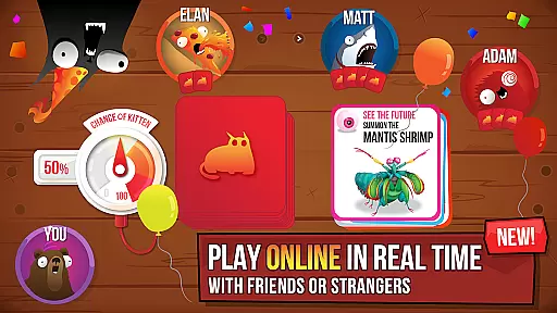 Exploding Kittens® stands out with its innovative features designed for digital play. The game supports 2-5 player matches across multiple devices in the same room or online, maintaining the social aspect of the original card game while adding convenient digital functionality. Exclusive digital cards and expansions enhance the traditional gameplay.