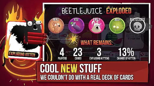 With exclusive digital cards, stunning artwork by The Oatmeal, and expansions like Barking Kittens and Betrayal Pack, the app offers a comprehensive collection of gameplay options. Players can defuse explosive situations using creative tools like laser pointers and catnip sandwiches while enjoying the signature quirky style that made the physical game a sensation.