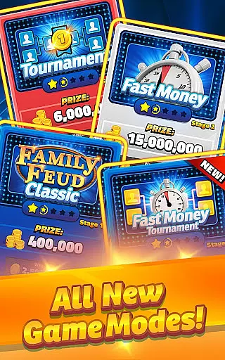 Family Feud Live! stands out with its diverse selection of six unique game modes catering to different play styles. The Classic Feud mode allows players to challenge each other one-on-one, answering best Feud Surveys to earn coins. For those who prefer quicker gameplay, Fast Money rounds offer rapid-fire questions where players can win more coins per minute. Additionally, the 3 vs 1 Tournaments provide a competitive arena to win substantial coin prizes and medal awards.