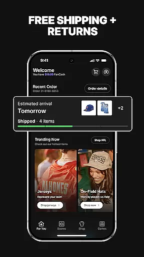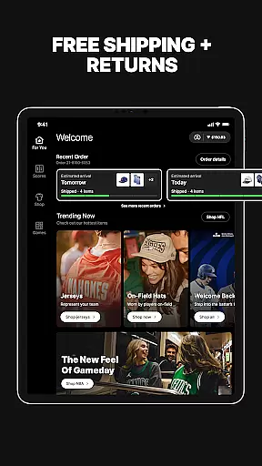 The app's design emphasizes user-friendly navigation with clear categories and search functionalities. Fans can effortlessly browse through extensive collections of NFL, NBA, and other sports gear, while features like free shipping and returns simplify the purchasing process.