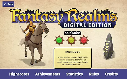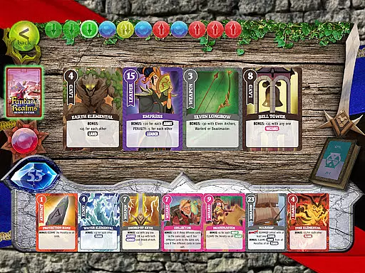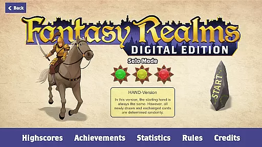 With three distinct game modes including Solo, Pass & Play, and Local AI matches, Fantasy Realms caters to various play styles. Players can also engage in global competitions through weekly high score lists, adding a layer of excitement and challenge. The inclusion of achievements and a tutorial ensures both novice and experienced gamers can enjoy and master the game's intricacies.