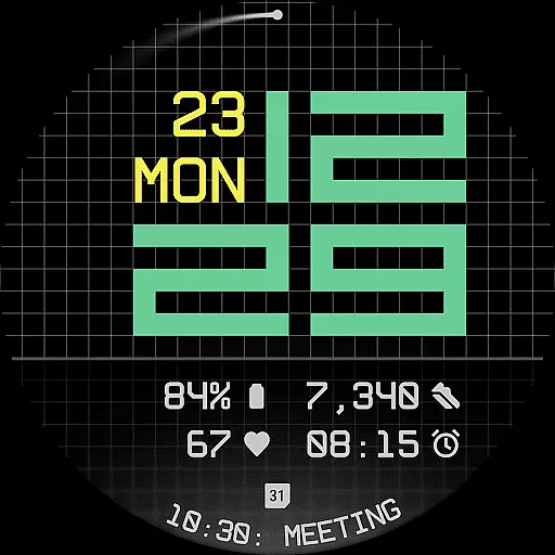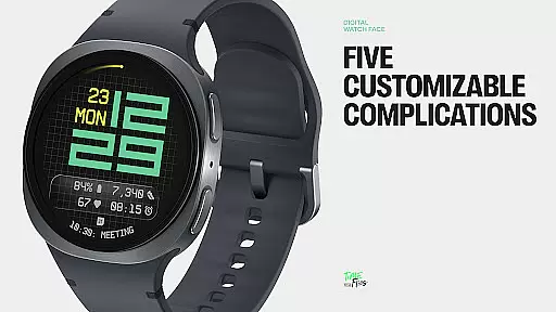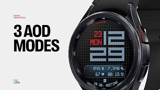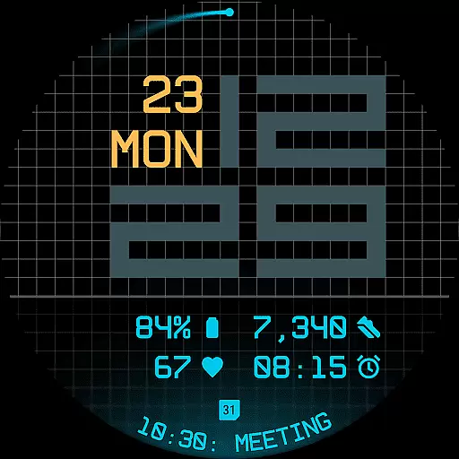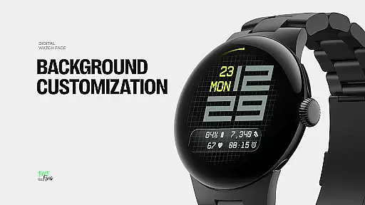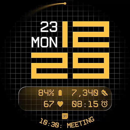 The watch face offers three distinct background options - stylized grid, softly blurred segment, or translucent UI plate - allowing users to personalize their viewing experience. With five available complications, including four short-text slots and one long-text slot, users can maximize information density without cluttering the interface. Additional features like built-in day-date display, optional seconds indicator, and three energy-efficient Always-On Display modes further enhance usability. The inclusion of 30 color themes ensures adaptability across devices and lighting conditions.