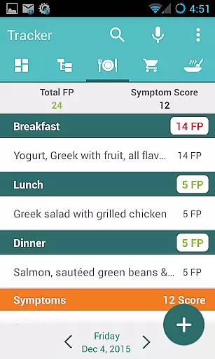 Another significant feature is the app's comprehensive tracking system. It allows users to log meals, record symptoms, and monitor their progress through automatically generated graphs. The tracking system extends beyond basic logging by incorporating customizable elements such as personal recipes and custom food creation. The built-in FP calculator adds another layer of functionality, enabling users to determine the FP value of any food item not already in the database.