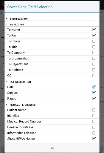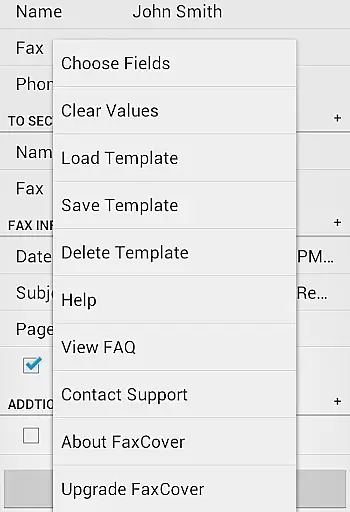 The application provides comprehensive customization options for creating fax cover pages. Users can select from various fields to include relevant information and add personalized notes to each fax. The template system streamlines workflow by allowing quick access to frequently used configurations.