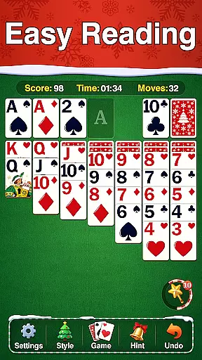 Festival Solitaire stands out with its unique combination of accessibility and customization. The enlarged fonts, cards, and eye protection theme ensure a comfortable gaming experience, while the Christmas-themed visuals add a festive touch. Offline playability makes it versatile for any location, whether you're relaxing by the fireplace or traveling during the holidays.