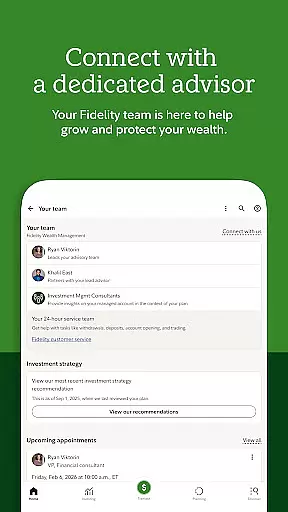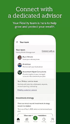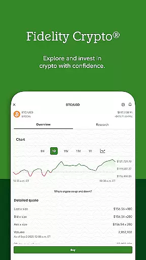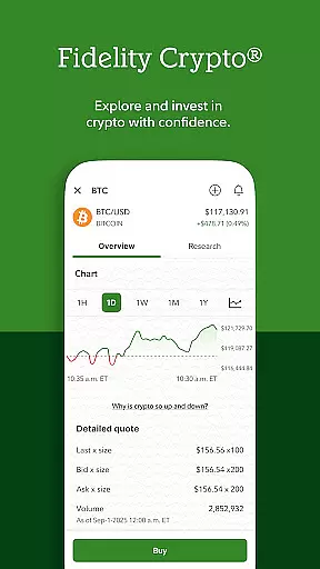 Users can trade and transfer cryptocurrencies like Bitcoin and Ethereum through Fidelity Crypto®. The app also provides cash management solutions including bill payments, check deposits, and automated investments. Enhanced security measures such as 2-factor authentication and voice biometrics ensure account protection, while 24/7 support is available via a Virtual Assistant.