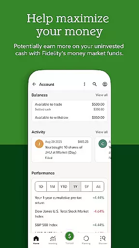 A seamless transaction experience is crucial for any financial application, and Fidelity Investments excels in providing users with powerful tools to manage their trades efficiently. The app supports commission-free trading for US equities and ETFs, allowing retail clients to execute trades without worrying about additional costs.