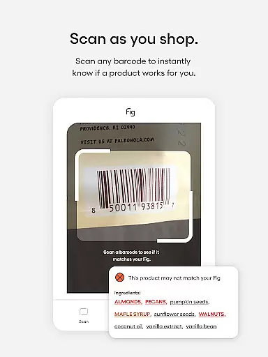 Fig is a revolutionary health and fitness application designed to assist users with dietary restrictions and allergies. With support for over 2,800 dietary options including Gluten-Free, Vegan, and Low Histamine, Fig empowers users to navigate grocery shopping and dining out with confidence. The app's barcode scanner checks product compatibility in under a second, while expert dietitian ratings provide comprehensive ingredient analysis.