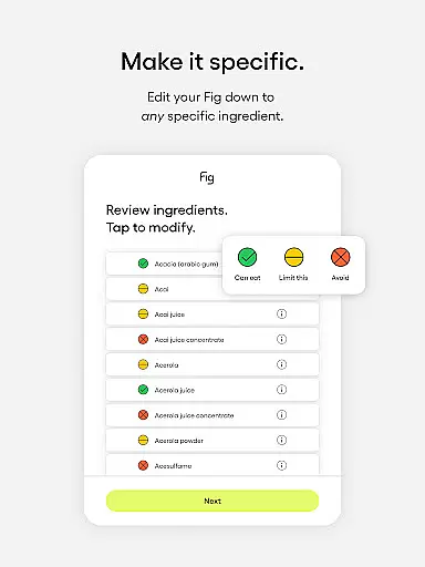This level of personalization ensures that individuals with even the most unique dietary needs can navigate their food choices with confidence, making Fig an indispensable tool for maintaining health and well-being.