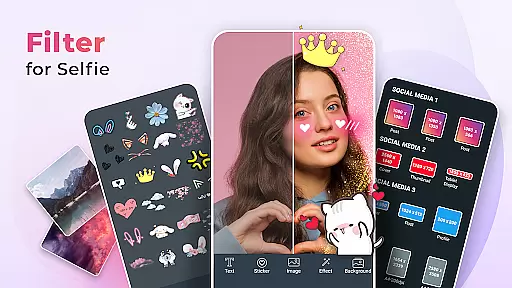 Filter for Selfie is a feature-rich beauty app designed to elevate your selfie game. This app offers an extensive collection of camera filters, photo effects, and creative stickers that allow users to transform their selfies into stunning works of art. With advanced beauty tools, you can smooth skin, brighten eyes, and enhance natural features effortlessly.