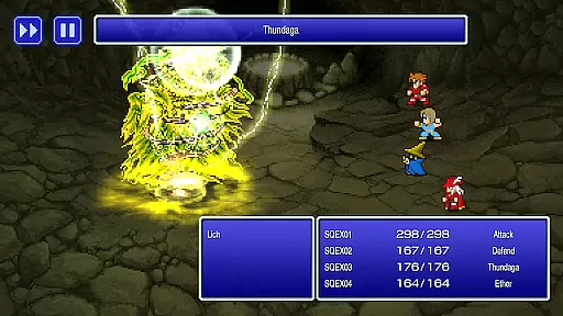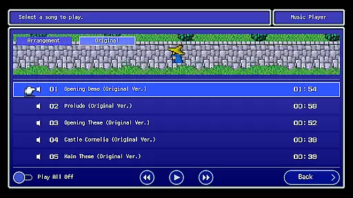 FINAL FANTASY boasts universally updated 2D pixel graphics and character designs by Kazuko Shibuya, alongside a soundtrack overseen by Nobuo Uematsu. The game's UI has been modernized, including auto-battle options and support for gamepad controls, allowing for a dedicated gamepad UI when connected to a compatible device.