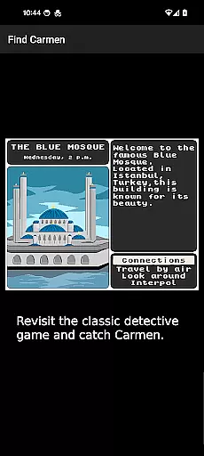 In the realm of educational gaming, content authority and curriculum alignment are crucial for ensuring that learning is both effective and accurate. Find Carmen - Stop VILE Agents draws from the original Where in the World is Carmen Sandiego game, a classic edutainment title from 1985 known for its strong emphasis on geography education. The app provides an interface to this historical resource, which has been publicly archived and made accessible through the Internet Archive.