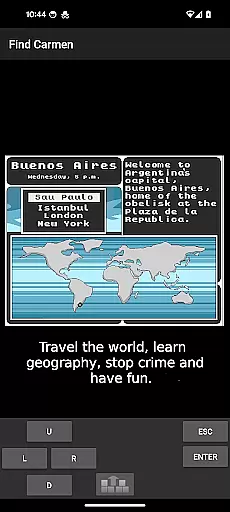 Find Carmen - Stop VILE Agents is an educational game that brings the classic Where in the World is Carmen Sandiego experience to Android devices. This app allows users to play the original detective game from 1985, focusing on solving crimes committed by members of V.I.L.E.
