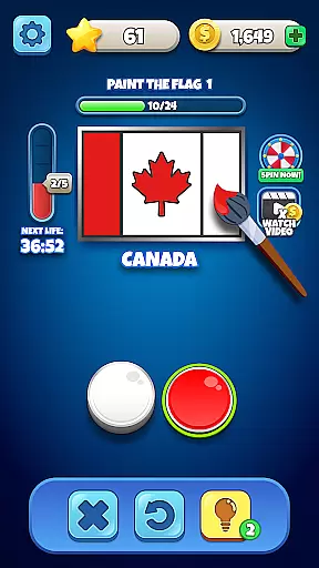 Flags Quiz boasts an array of features designed to enhance user engagement and provide a rich gaming experience. One standout feature is the 'paint the flag' challenge where users recreate flags by selecting correct colors and patterns, adding a creative twist to traditional quizzes.