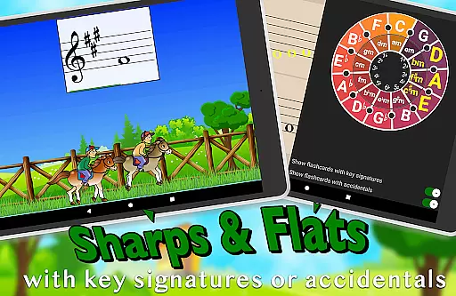 Flashnote Derby stands out with its unique horse racing concept that turns note reading into an engaging competition. The game is fully customizable, allowing users to select specific notes, ranges, or even include sharps, flats, and key signatures. This flexibility makes it suitable for beginners and advanced students alike. Players can respond to flashcards in multiple ways - by playing their instrument, tapping letter buttons, or using the on-screen piano.