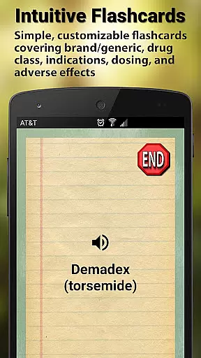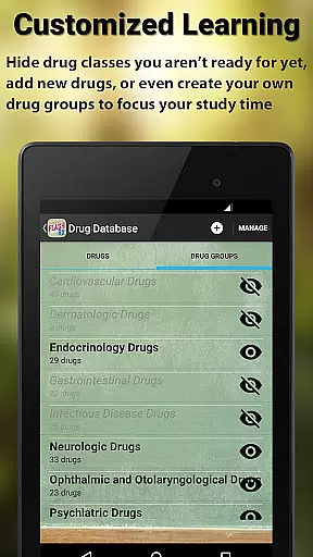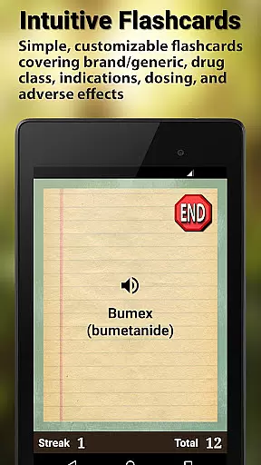 The app features flashcard and quiz modes designed to optimize learning strategies. Users can customize their study sessions by focusing on specific aspects like brand/generic names, drug classes, indications, adverse effects, and typical dose ranges. This flexibility allows learners to tailor their education to individual needs and goals.