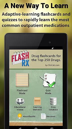FlashRX is a specialized medical education app designed for healthcare students and professionals to master the top 250 outpatient medications. This app employs flashcards and quizzes to simplify learning, focusing on concise information such as brand/generic names, drug classes, indications, adverse effects, and dosing ranges. Its adaptive learning system ensures users concentrate on areas they haven't mastered, making it ideal for exam preparation (e.g., NAPLEX, NCLEX) and professional use.