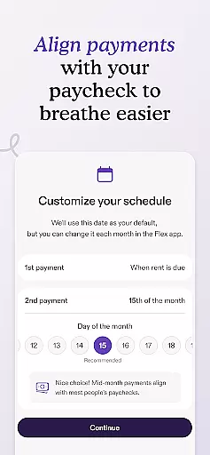 The app offers access to a credit line specifically for rent payments. Users pay a portion of their rent upfront and borrow the remainder, which Flex pays directly to the landlord. This system allows renters to repay Flex on a schedule that suits their financial situation. Additionally, the app includes features like credit reporting and payment scheduling, making it a comprehensive tool for managing rental obligations. Flex's service is subject to eligibility requirements and comes with associated fees, ensuring transparency in its financial offerings.