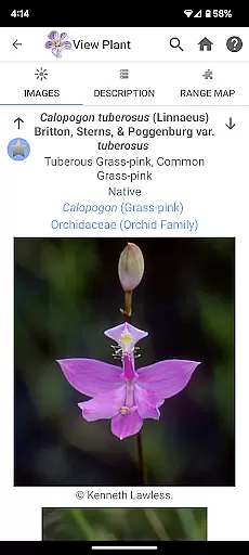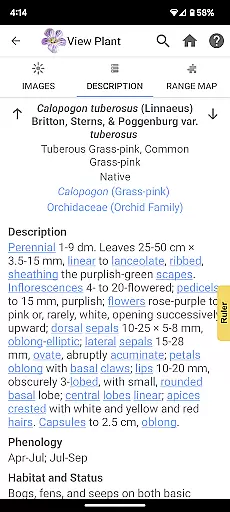 In addition to versatile organization options the app includes original illustrations and photos which enrich the user experience. These visual aids along with pop-up botanical glossaries and range maps provide clear and engaging learning tools that help demystify complex botanical terms and concepts.