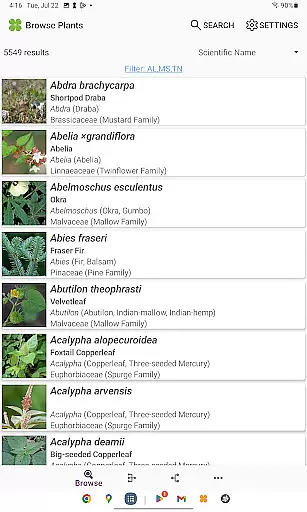 FloraQuest: South Central offers an extensive e-book library comprising detailed information on 5,549 plant species found across Alabama, Mississippi, and Tennessee. This vast collection ensures that users have access to a comprehensive resource for plant identification and study.