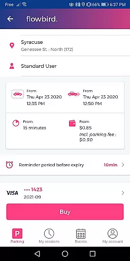 In addition to displaying upfront costs, the app also informs users about any rules or restrictions related to time extensions. This ensures that users understand how much extra time will cost if they need to extend their parking session.