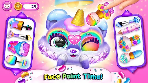 Beyond basic pet care, the app includes mini-games and exploration elements across different themed areas. Players can engage in coin-collecting challenges, swimming adventures, and musical activities with their Fluvsies. The inclusion of fashion salons and face painting studios adds creative depth, allowing children to express themselves while developing fine motor skills and aesthetic appreciation.