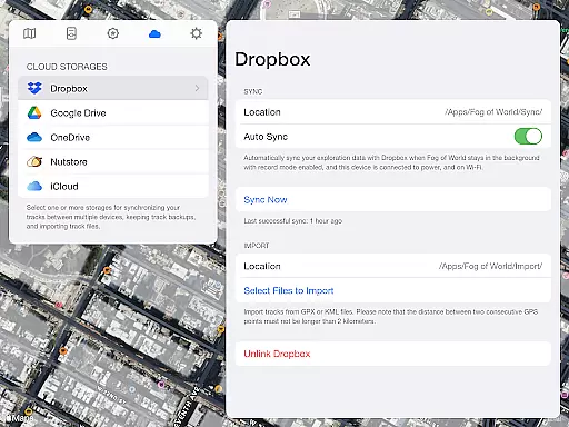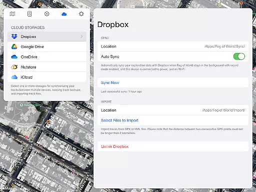 One of the key features is its commitment to privacy; Fog of World does not require a user account, ensuring all data remains on the user's device. Users can sync or back up their data to various cloud services like Dropbox, Google Drive, OneDrive, and Nutstore without the developers having access to it. Additionally, the app's database is optimized for minimal storage use while maintaining high performance.