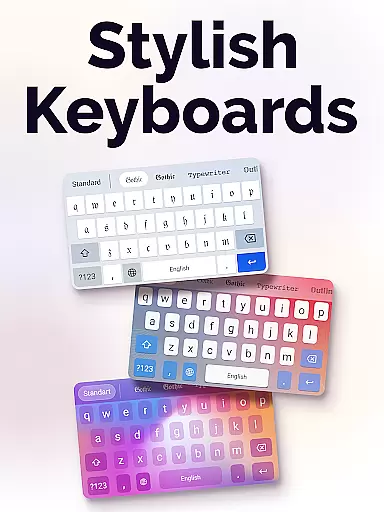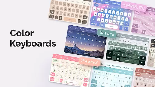 A key implementation is the customizable keyboard themes system, allowing users to create unique typing experiences. This includes fancy or cute keyboard designs, cursive options, and personalized background patterns. The app also incorporates practical UI enhancements such as color widgets for home screens, providing both functional and decorative benefits.