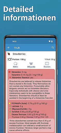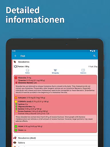 Food Intolerances boasts a range of features that cater to diverse dietary needs. The app includes detailed tables and comments on the tolerance levels of various foods, aiding users in managing conditions like histamine intolerance, tyramine intolerance, and others. With specific filters for FODMAPs, biogenic amines, and problematic food additives, users can tailor their experience to their unique health requirements.