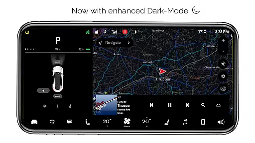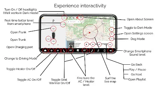 One of the most impressive aspects is the ability to control various vehicle functions through the app's intuitive interface. Users can toggle headlights (with optimized dark mode functionality), adjust cabin temperature, monitor smartphone battery levels, and operate trunk/frunk/charging ports virtually. The app also features different modes like Driving Mode, Dog Mode, and Dark Mode, each offering unique experiences.