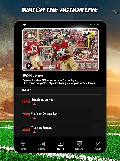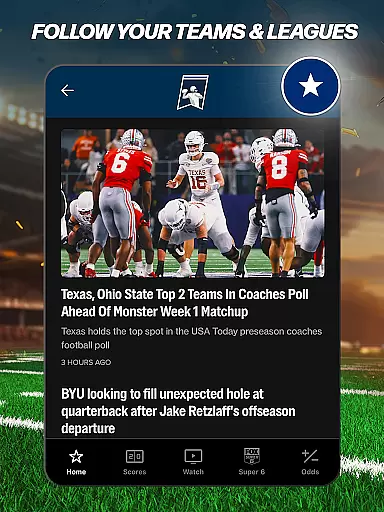 FOX Sports goes beyond basic game coverage by offering expert analysis, opinion pieces, and betting insights. The Odds section provides users with expert game line analysis, betting tips, and related video content. Additionally, the app includes engaging features like FOX SUPER 6, where users can compete for cash prizes during select events. With support for Android TV and 4K streaming on select devices, the app ensures an optimal viewing experience across multiple platforms.