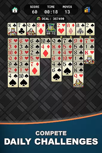 Advanced gameplay features include unlimited undo moves, smart hints system, and the ability to play specific deal numbers for repeatable challenges. Competitive players will appreciate the online daily challenges with trophies, leaderboard rankings, and detailed statistics tracking. The winning streak system and adjustable difficulty levels provide additional depth and progression tracking.