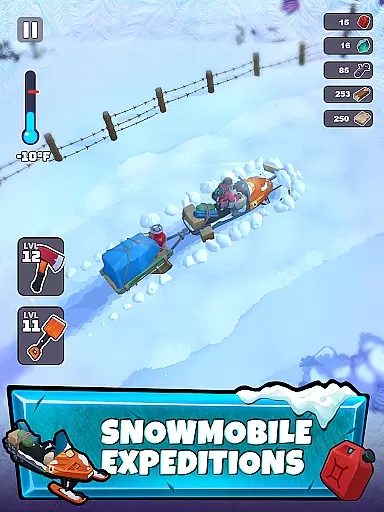 A key feature is the dynamic weather system that impacts gameplay—players must adapt their strategies based on worsening conditions. Managing dwindling supplies of food and fuel adds another layer of strategy, requiring careful planning and foresight. Additionally, the ability to establish and upgrade a base camp introduces a sense of progression and security.