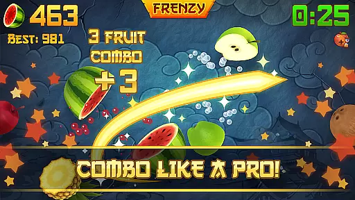 The game employs intuitive touch controls that allow players to swipe across the screen to slice fruit. This direct interaction ensures immediate feedback, creating a seamless connection between the player's intentions and the game's response. The responsive controls make each slice feel impactful and precise.