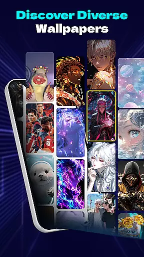 Users can enjoy diverse themes such as dark, angry, and spooky smiles, allowing them to match their screen's vibe to their current mood or style. The app also provides additional wallpaper options across themes like Anime, Sports, Animals, and Flowers, catering to various interests.