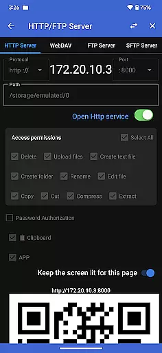 Another notable feature is the ability to manage files over a wireless network using HTTP, FTP, or SFTP protocols. This allows users to transfer documents, pictures, and text files between their computer and mobile phone without using data cables. The inclusion of a WebDAV server further enhances this capability, enabling seamless file access from desktop environments like macOS Finder. Additionally, the Treemap visualization provides a unique way to understand storage usage, while features like QR code scanning and markdown file preview add to the app's versatility.