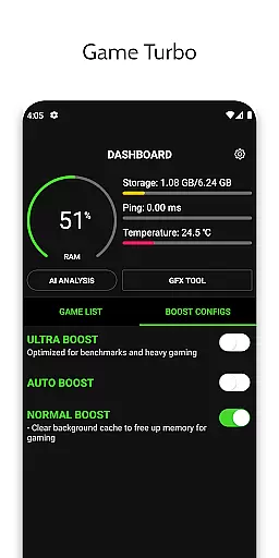 Another notable feature is the Zero Lag Mode, which optimizes game configurations for peak performance. Combined with other functionalities such as Quick Boost and Quick Launch, these tools create a seamless gaming experience. The app guarantees account safety while promising optimal performance without any risk to the device, making it a reliable choice for enhancing mobile gaming sessions.