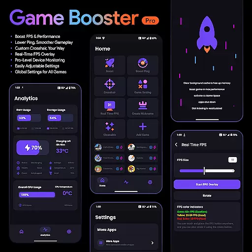 Game Booster Pro is a powerful tool designed to enhance your gaming experience on mobile devices. This app focuses on optimizing game performance by boosting FPS, reducing lag, and providing real-time device monitoring. Whether you're playing graphics-intensive games or competitive shooters, Game Booster Pro ensures smoother gameplay through its advanced optimization features.