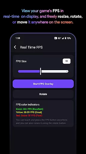 One of the standout features is the custom crosshair option, allowing users to create personalized aiming aids for better precision in FPS games. The real-time FPS overlay enables players to monitor performance metrics without leaving the game. Additionally, the app's pro-level device monitoring provides detailed insights into CPU, GPU, and memory usage. The easily adjustable settings and global preferences make it simple to apply optimizations across multiple games, while the local-only VPN connection ensures network prioritization without compromising privacy.