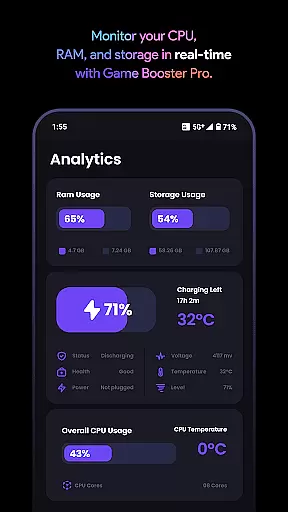 Users benefit from Game Booster Pro's precision in managing device performance. With real-time FPS overlays and pro-level device monitoring, players can track their device's stats without leaving the game. This functionality not only empowers gamers with knowledge about their device's performance but also allows them to make necessary adjustments swiftly, ensuring uninterrupted and optimized gaming sessions.