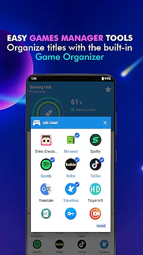 Gaming Hub stands out with its robust feature set tailored for efficient app management. The Android Game Launcher allows users to manage both games and regular apps seamlessly. Its intelligent Organizer Master automatically detects popular titles from renowned publishers, while also supporting manual additions for personalized curation.