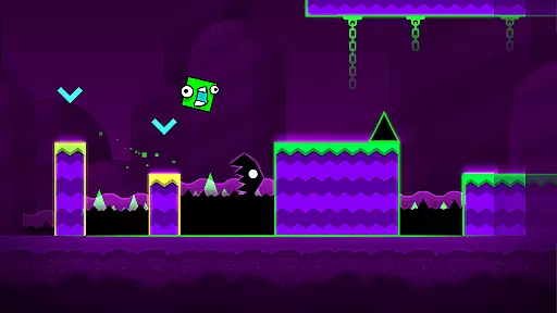 Geometry Dash World is an arcade game that combines rhythm-based platforming with challenging level design. Players navigate through ten unique levels filled with dark caves, spiky obstacles, and gravity-defying challenges. The game features music from renowned artists like Dex Arson, Waterflame, and F-777, creating an immersive audio-visual experience.