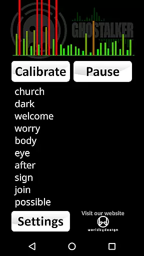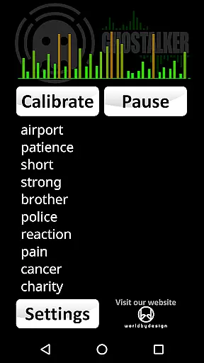 Ghostalker is a unique paranormal investigation app designed to convert environmental energy into spoken words. This innovative application utilizes the full range of sensors found in your mobile device, including vibration, rotation, GPS, gyroscope, light, magnetic fields, and proximity detectors to pick up subtle changes in energy patterns. With a comprehensive database of over a thousand commonly used words, Ghostalker interprets raw sensor data to generate relevant verbal responses rather than relying on random word selection.