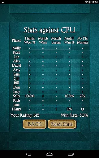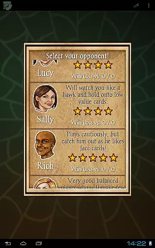 Gin Rummy Pro stands out with its finely-tuned AI opponents, offering a range of challenges suitable for all skill levels. The app includes 15 CPU players, each with unique playing styles, ensuring a varied and challenging experience. The introduction of CPU player 'style' adds depth to the gameplay, making each match feel distinct and engaging.