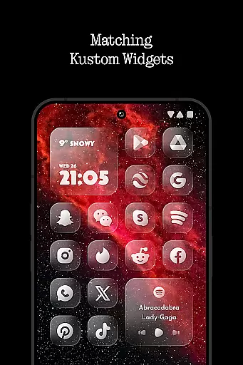 The inclusion of five Kustom widgets adds another layer of personalization, allowing users to create unique home screens that reflect their style. These widgets are not just functional but also serve as design elements that enhance the overall aesthetic.