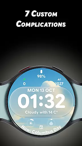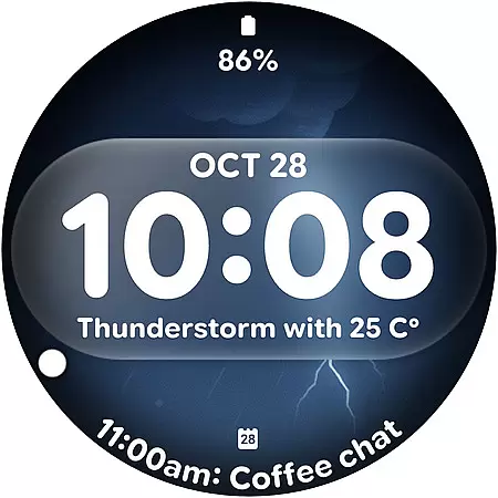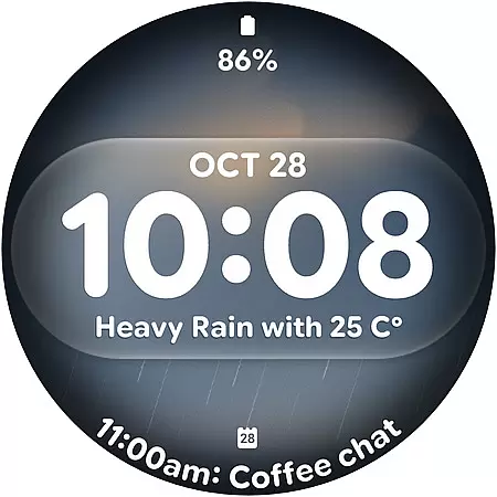 Glass Weather 4 stands out with its innovative live weather background system that automatically updates based on current weather conditions. The watch face displays either a 12-hour or 24-hour time format, catering to user preferences while maintaining clarity with its big, bold digits.