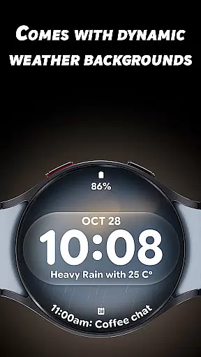 Glass Weather 4 is a premium watch face designed specifically for Wear OS smartwatches, offering users a perfect blend of style and functionality. This application transforms your smartwatch into a sleek, modern timepiece with dynamic weather-based backgrounds that adapt to real-time conditions.