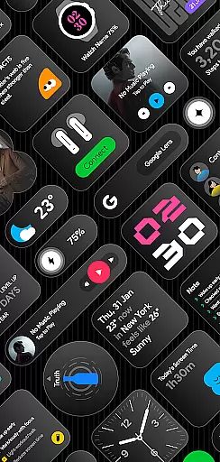 The app includes a wide variety of widget types such as clocks, weather, calendars, battery indicators, step counters, quotes, compasses, and quick settings. Each widget is crafted with a minimalist and personalized design approach, allowing users to tailor their device's appearance to match their unique style. The inclusion of battery-friendly optimization ensures smooth performance while regular updates bring fresh content to users.