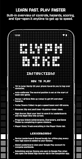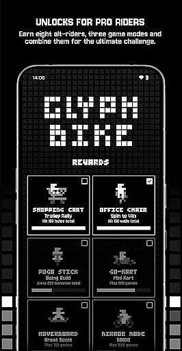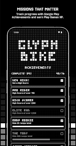 What sets Glyph Bike apart is its dual-storage system for scores and rewards. While global leaderboards and achievements sync through Google Play Games, all unlockable content and progress remains accessible offline, ensuring uninterrupted gameplay regardless of internet connectivity.