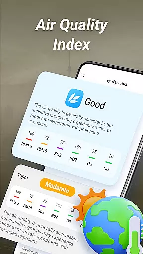 In addition to its advanced radar technology, the app provides real-time air quality index (AQI) updates and weather alerts. These notifications ensure that users are always aware of any significant changes in weather conditions or air quality, helping them make informed decisions about their day. The hourly weather forecast feature further enhances this by delivering updates on temperature, wind speed, humidity, and cloud cover every hour.